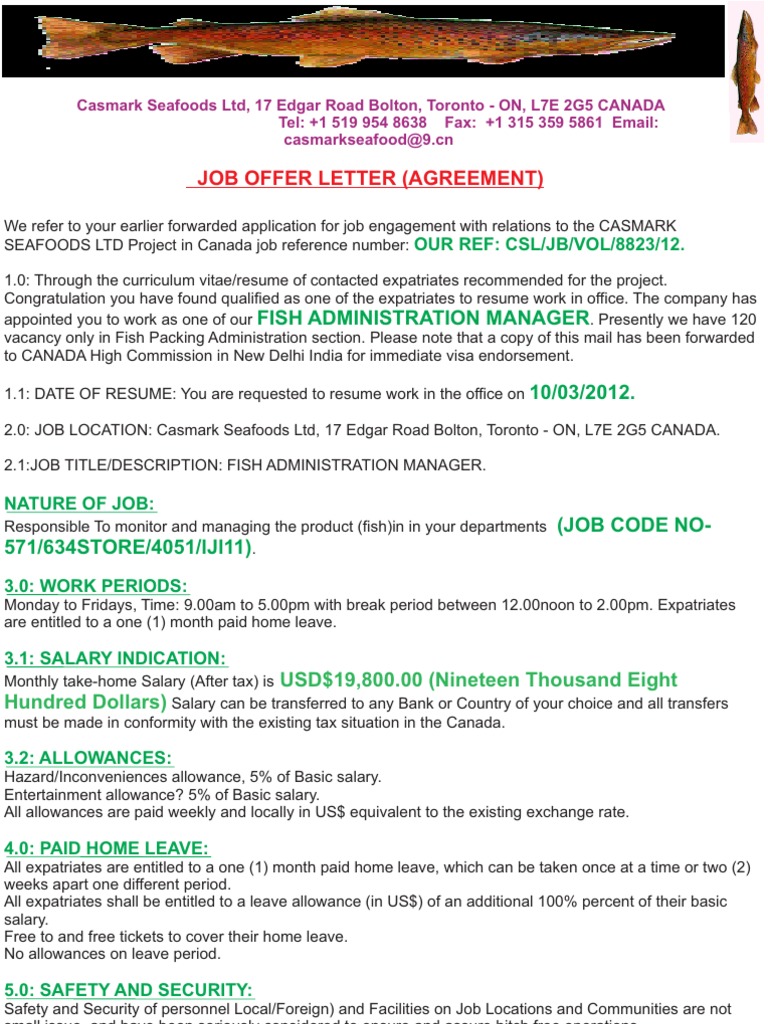 Golden Sea Foods Co Ltd Canada Job Offer Letter In Canada Lettering Job Offer Job